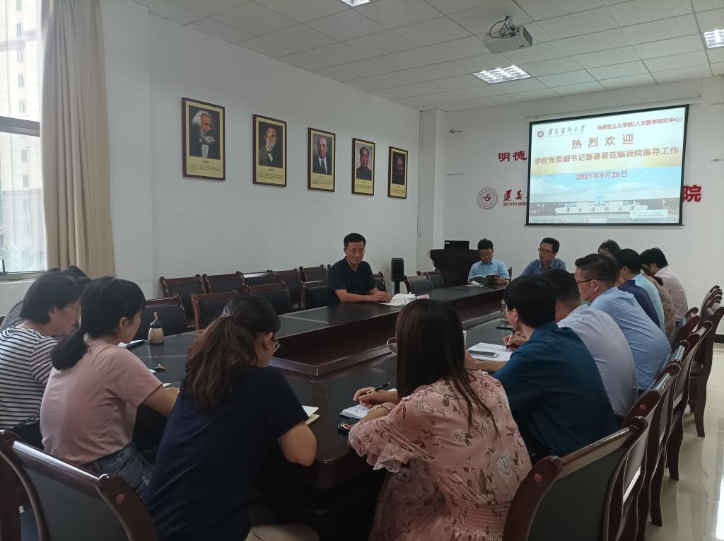 会上,蔡善君副书记首先问候公司全体教职工,并对公司近期取得一系列成绩表示肯定。随后,蔡书记围绕人才培养、团队队伍建设专业申报和团队建设作了指导性讲话,强调要正确处理改革发展稳定关系,强调立德树人为根本任务,深入贯彻教育部“回归常识、回归本分、回归初心、回归梦想”人才培养要求,具体分析“双一流”建设背景下公司思想政治教育工作的新形势、新契机和新挑战,并就365英国在线体育(人文医学研究中心)如何服务公司高质量发展和推动学科内涵式发展提出建设性意见。