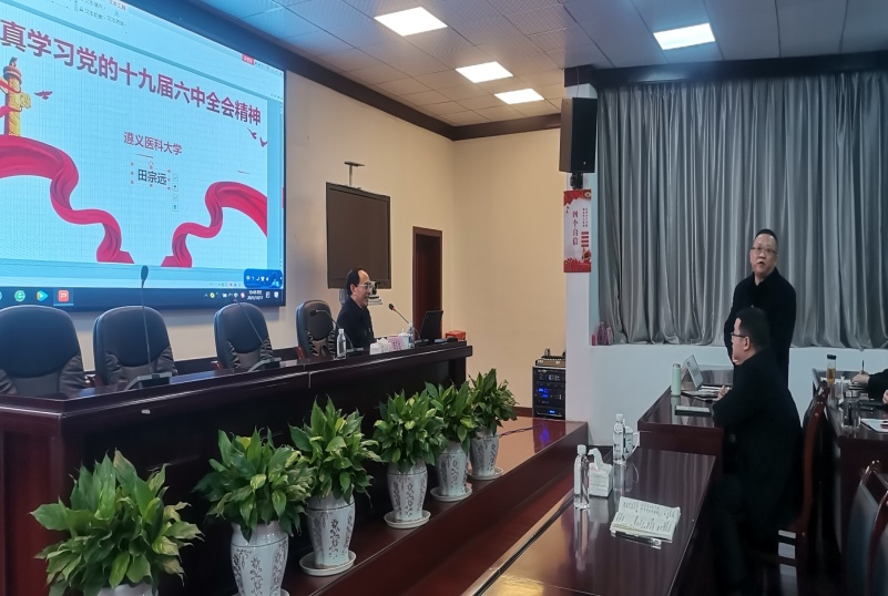为深入学习宣传贯彻党的十九届六中全会精神,2021年12月17日,365英国在线体育原党委副书记田宗远教授来到公司党委的“党建联系点”之一——中国农业银行遵义汇川支行开展十九届六中全会精神主题宣讲活动。此次宣讲活动由农行遵义汇川支行梁建秋副行长主持,农行遵义汇川支行的全体党员参加了本次宣讲会。