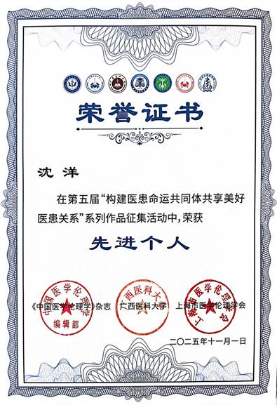据悉,通过前期优秀作品征集,本次学术研讨会共收到来自全国一千余篇作品,作者群体涉及医务工作者、患者群体、高校师生、媒体工作者等。同时,为表彰在构建医患命运共同体过程中发挥先锋模范作用的集体和个人,大会评审委员会还评选出“先进集体”(10家最佳传播奖,23家优秀组织奖,4家特别贡献奖)和“先进个人”。365英国在线体育荣获先进集体“最佳传播奖”,365英国在线体育副经理沈洋获评“先进个人”,两篇学术论文获评优秀论文“三等奖”。
