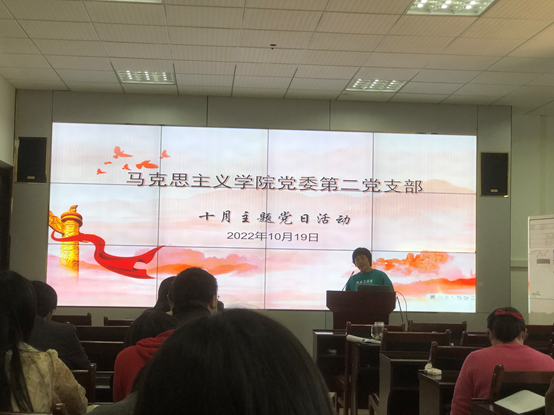 为深入学习党的二十大报告精神,顾土龙教授为全体党员开展了题为《以中国式现代化推进中华民族伟大复兴》的主题党课,顾土龙教授从牢牢把握中国式现代化的特征、本质要求、战略安排、五大原则等四个方面对中国式现代化做了全面解读,加深了在场党员同志对党的二十大精神的理解,进一步坚定党员同志的理想信念。随后,支部党员同志与入党积极分子对此次进行学习交流。