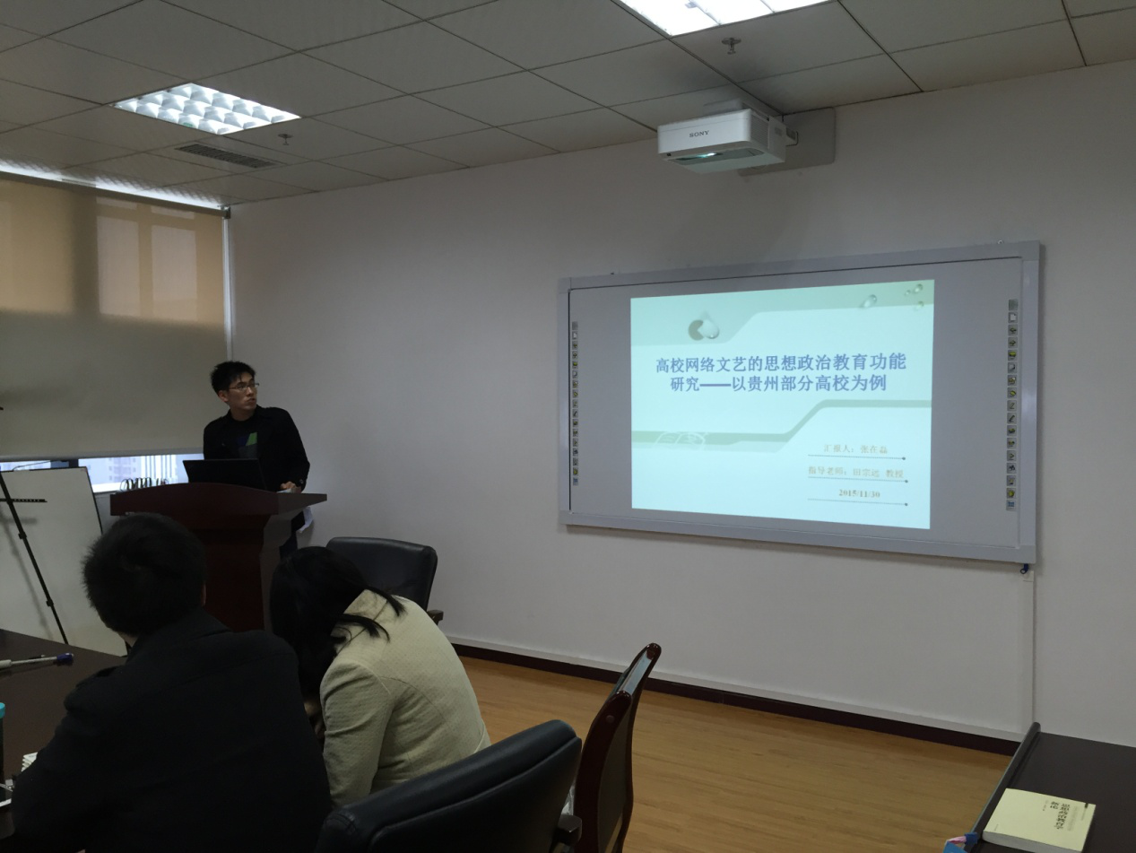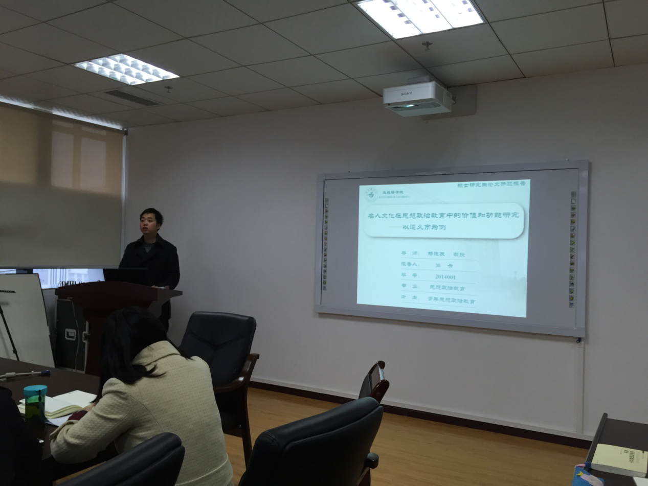 此次开题报告会不仅是对我系研究生学习、研究的一次阶段性检验,也在一定程度上推动了公司思想政治教育学科的建设,为思政专业14级研究生毕业论文指导工作下一阶段的顺利开展作了铺垫。15级研究生也在写作思路等方面受到了较好启迪。(撰稿 张月露 摄影 王壮)