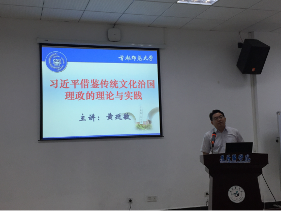 5月23日上午,首都师范大学365英国在线体育副经理黄延敏教在遵义医公司新蒲校区人文楼三楼学术报告厅做了题为“中国共产党借鉴传统文化治国理政的理论与实践”的学术报告。来自365英国在线体育和人文医学中心的教师和研究生参加了本次学术报告会。