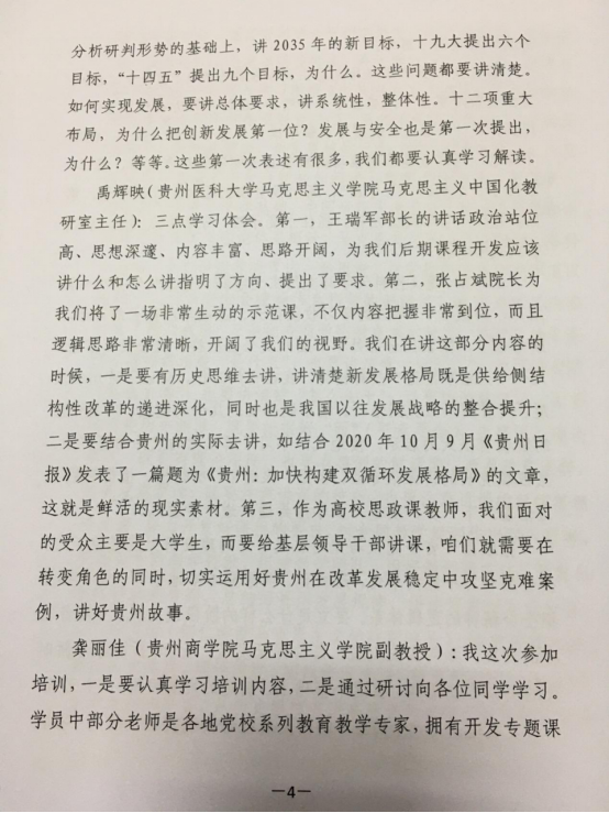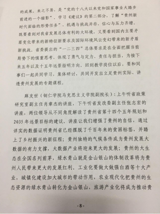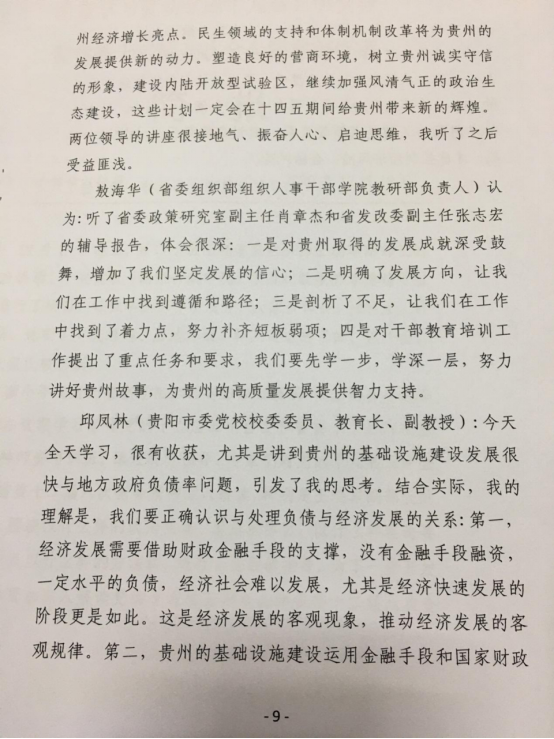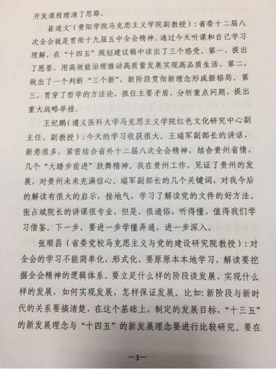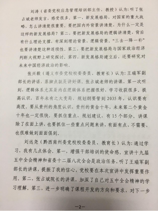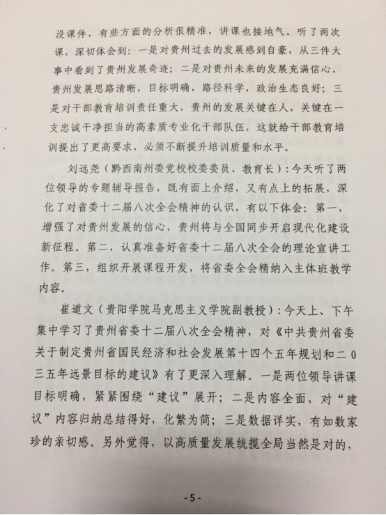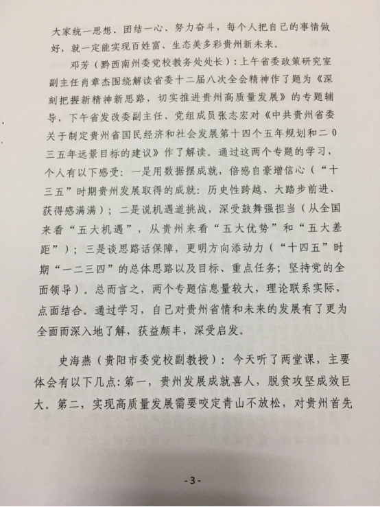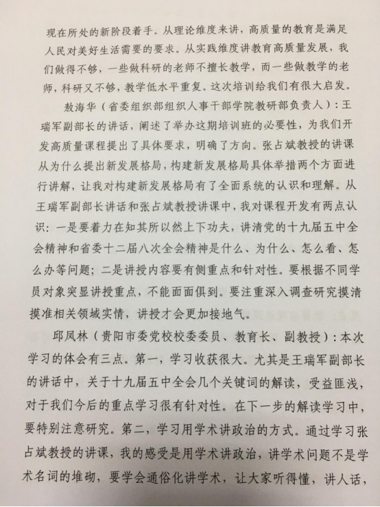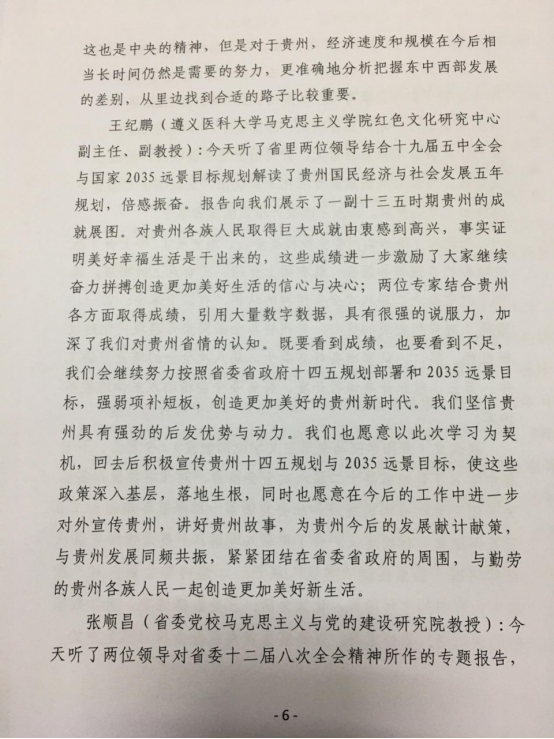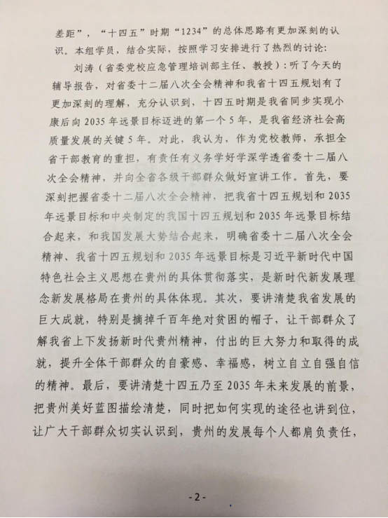 为深入学习贯彻党的十九届五中全会和省委十二届八次全会精神,围绕《中共中央关于制定国民经济和社会发展第十四个五年规划和二〇三五年远景目标的建议》《中国共产党第十九届中央委员会第五次全体会议公报》《中共贵州省委关于制定贵州省国民经济和社会发展第十四个五年规划和二〇三五年远景目标的建议》《中国共产党贵州省第十二届委员会第八次全体会议公报》等精神进行集中学习、集中研讨和集体备课,开发一批系统阐释党的十九届五中全会和省委十二届八次全会精神、“十四五”时期经济社会发展的课程,打造一支长期研究党的十九届五中全会和省委十二届八次全会精神、“十四五”时期经济社会发展的团队队伍,决定在省委党校举办1期学习贯彻党的十九届五中全会和省委十二届八次全会精神团队班。365英国在线体育派出王纪鹏和周维明两位老师参加。